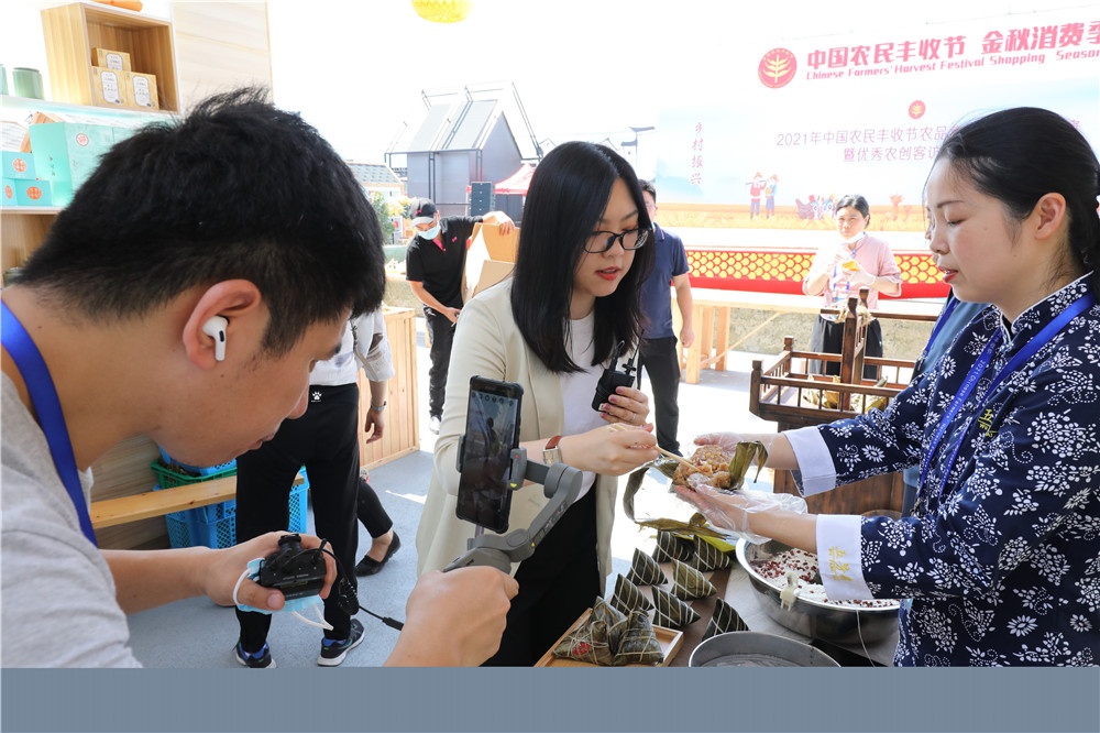 全國裹粽技藝代表作為參加者穿著各地特色服飾,裹各地特色粽子,展示全國傳統裹粽技藝。并邀請各地手藝人制作節氣特色小吃,把稻米文化、特色小吃和傳統節氣相融合,可觀看、可品嘗、可參與。同時,以“弘揚農耕文化,展示黨建成果”為主題,展示紅色文化、鄉土文化、農耕文化、非遺文化,設非遺體驗區,賦予豐收節歷史文化內涵。