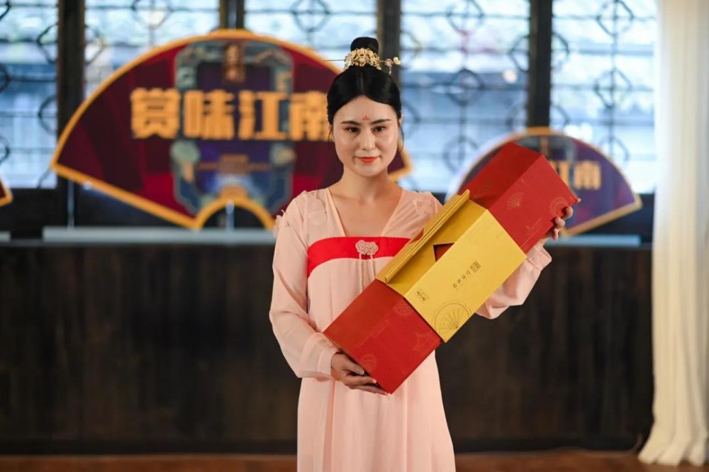在五芳齋2020中秋新品沉浸私享會暨云直播會的現場,大紅燈籠春風蕩,小橋流水棲鴦,緩緩流淌的江南絲竹樂,一舞飛天攬月裙裾飄飛拉開了本次活動序幕?,F場不僅為全國所有伙伴直播帶來五芳齋2020中秋新品系列首秀,更是邀請到古色古香的漢服秀表演,與五芳齋2020中秋季新品完美融合,全場嘉賓沉浸在江南水鄉溫柔光景之中,一場無與倫比的盛宴就此展開。