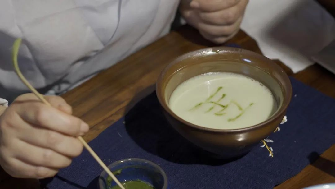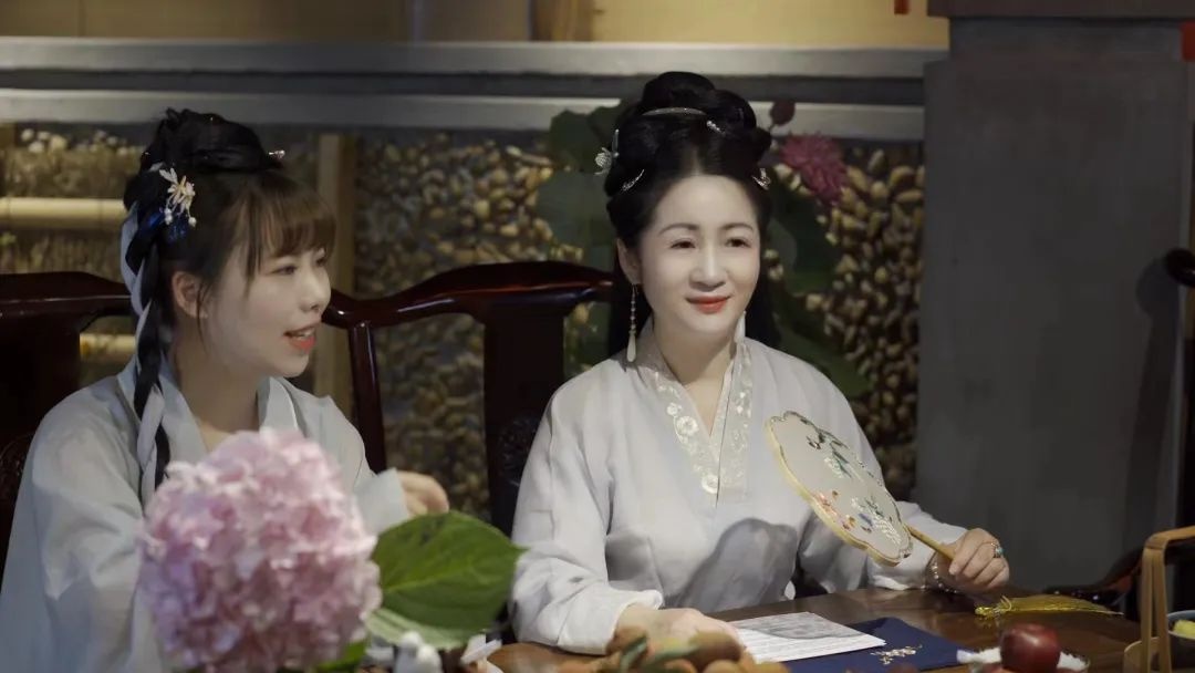 隨后,五芳齋小伙伴還嘗試了宋代“點茶”,先將茶葉磨成粉末,再投入碗里,注入水,注水時猶如蜻蜓點水,點茶之名由此而來。