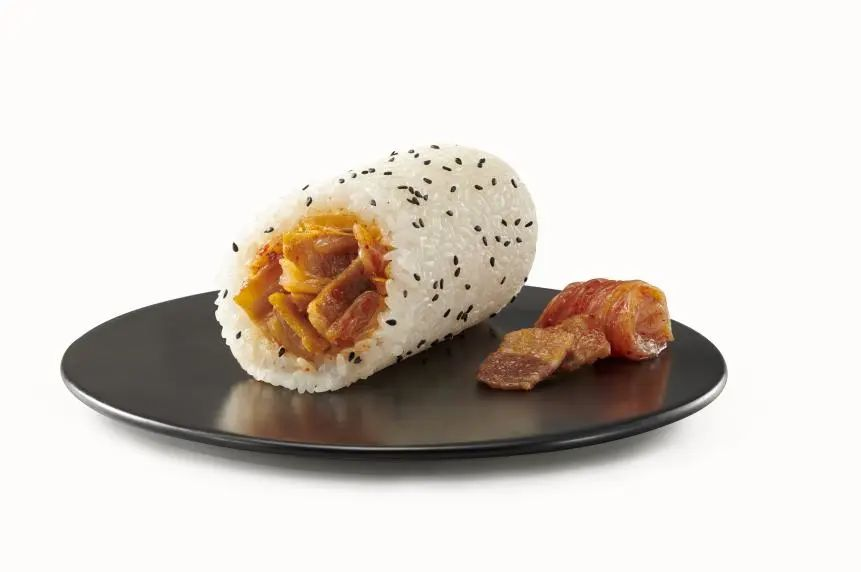 泡菜五花肉飯團,酸酸甜甜辣辣的泡菜包裹著香而不膩的五花肉,讓人味蕾大開。