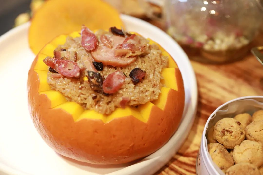 “十月朝,滋粑碌碌燒”,小雪歷來有食糍粑的習俗。直播現場,五芳齋精心準備了一系列以糯米為原料的節令美食——節令粽、流心八寶飯、爆料飯團、啊嗚一口飯團等作為烤物,用色香味俱全的誘人美食演繹了萬物皆可“圍爐烤茶”。五芳齋“紅糖奶黃流心八寶飯”選用東北糯米,融合細膩奶黃流心,奶香濃郁。直播現場的創新吃法,將八寶飯放入南瓜羹,帶來顏值頂配的糯甜享受。