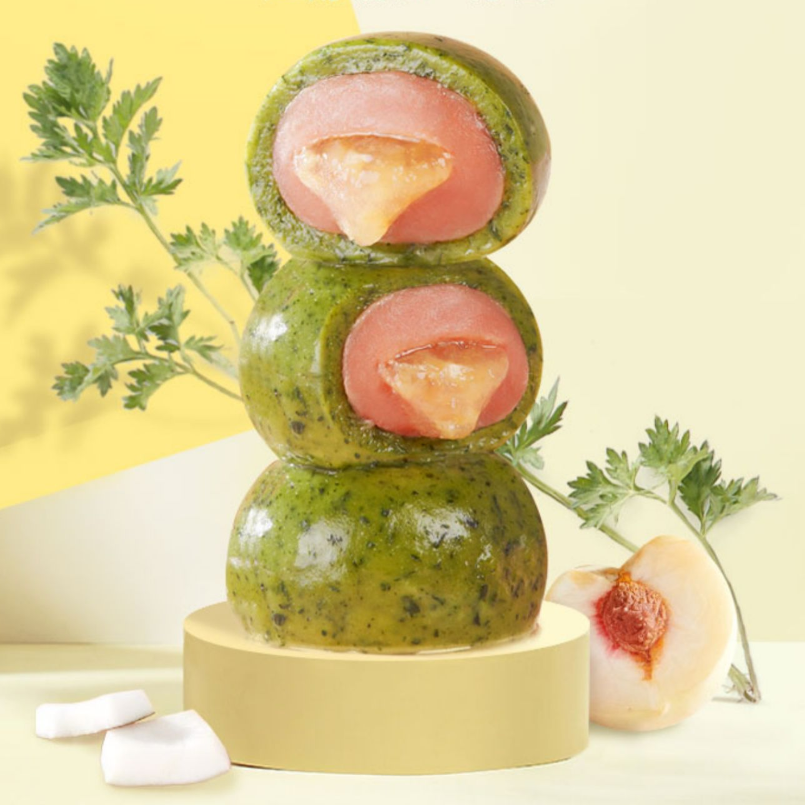 酸甜山楂包裹白桃果醬,入口層次豐富,軟滑的糯皮帶著淡淡艾草的清香,酸甜山楂與香甜果醬在口中交織迸發,春天的味道躍然于舌尖。