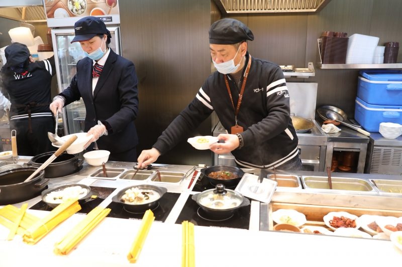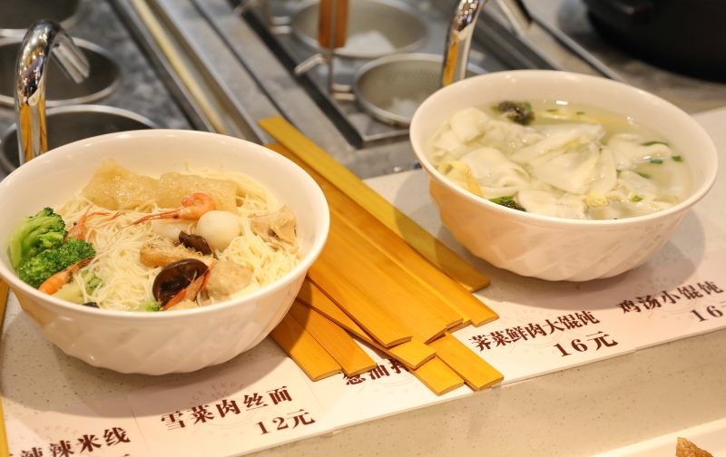 新餐廳采用“明檔”模式,把整個“后廚”搬到了“前廳”,每一份菜品制作、烹飪和出餐過程都向消費者敞開。點餐的同時,顧客可以感受到迎面而來的熱騰騰的“鍋氣”。此外,所有餐品都不局限在餐牌和菜單上呈現,顧客可以近距離的看到一道道新鮮剛出爐的菜品,并自助進行取餐,給顧客更多選擇。