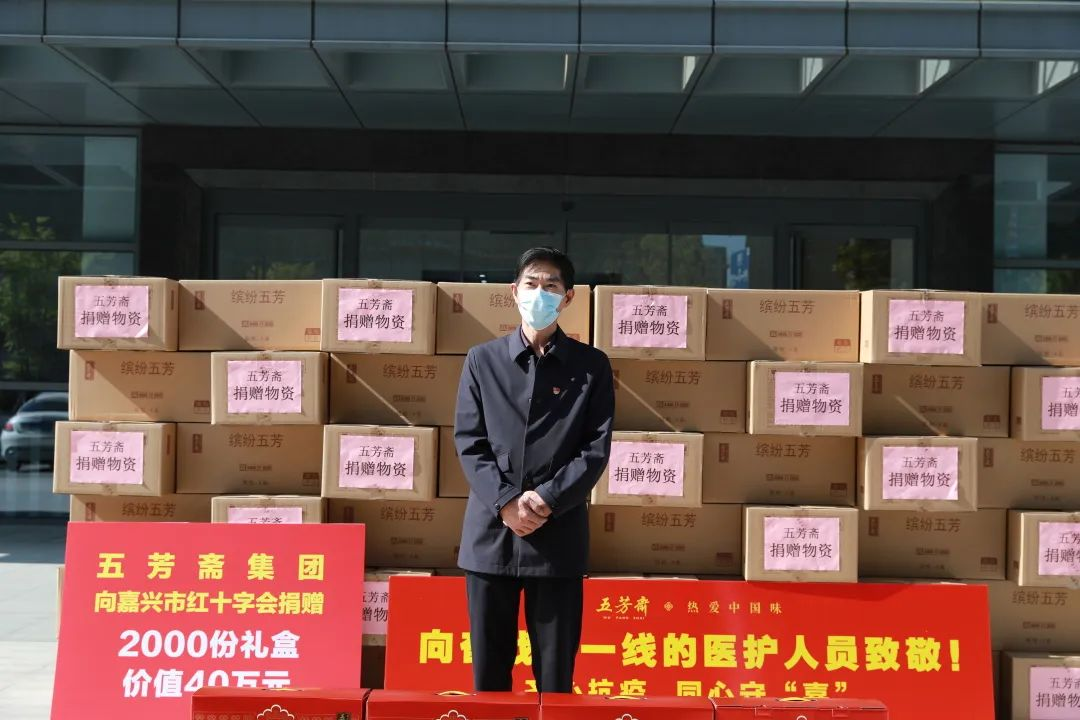 4月4日下午,五芳齋集團抗疫物資捐贈儀式在五芳齋總部舉行。嘉興市紅十字會、嘉興市衛健委、秀洲高新區管委會相關領導出席了捐贈儀式。五芳齋集團董事長厲建平向市紅十字會常務副會長吳海松捐贈2000份總價值40萬的愛心禮包,向日以繼夜奮戰在抗疫一線的醫務工作者表示慰問。誠摯感謝全體醫護人員對嘉興百姓的健康守護!